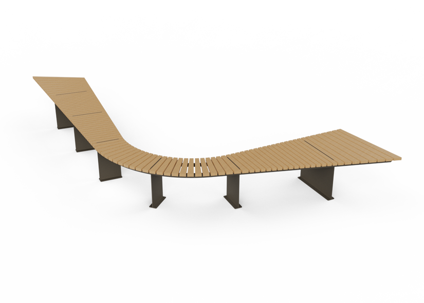 Matériau : Piétements en acier traités anti-corrosion et laqués RAL 7016 ; Lames en bois exotique traité avec huile protectrice.